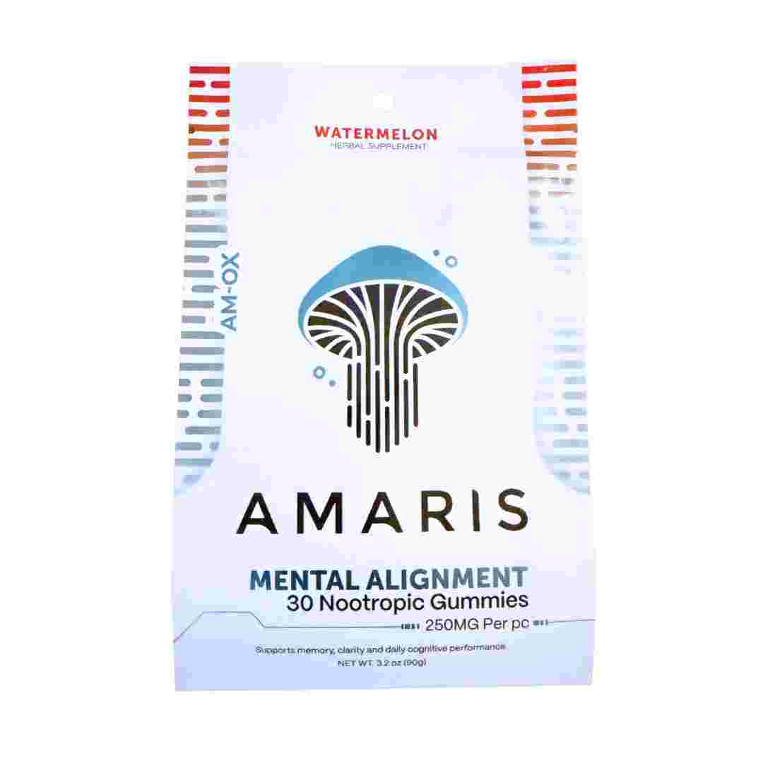 Amaris gummies use a proprietary blend called AM-0X™ — a “bio-intelligent microdose stack." The ingredients come from “genetically optimized functional mushrooms” and “bioactive compounds,” delivered “in a gut-friendly delivery system.” Each pack contains 30 gummies (250mg per pc).